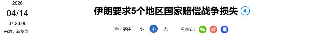 据伊朗法尔斯通讯社14日报道,伊朗常驻联合国代表已致信联合国秘书长,要求巴林、沙特阿拉伯、卡塔尔、阿联酋和约旦5个中东地区国家就其在“对伊战争中所扮演角色”进行赔偿。